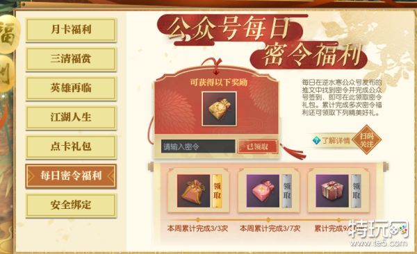 玩家需要现在微信公众号绑定账号,然后每日签到后就可以在游戏里输入密令。